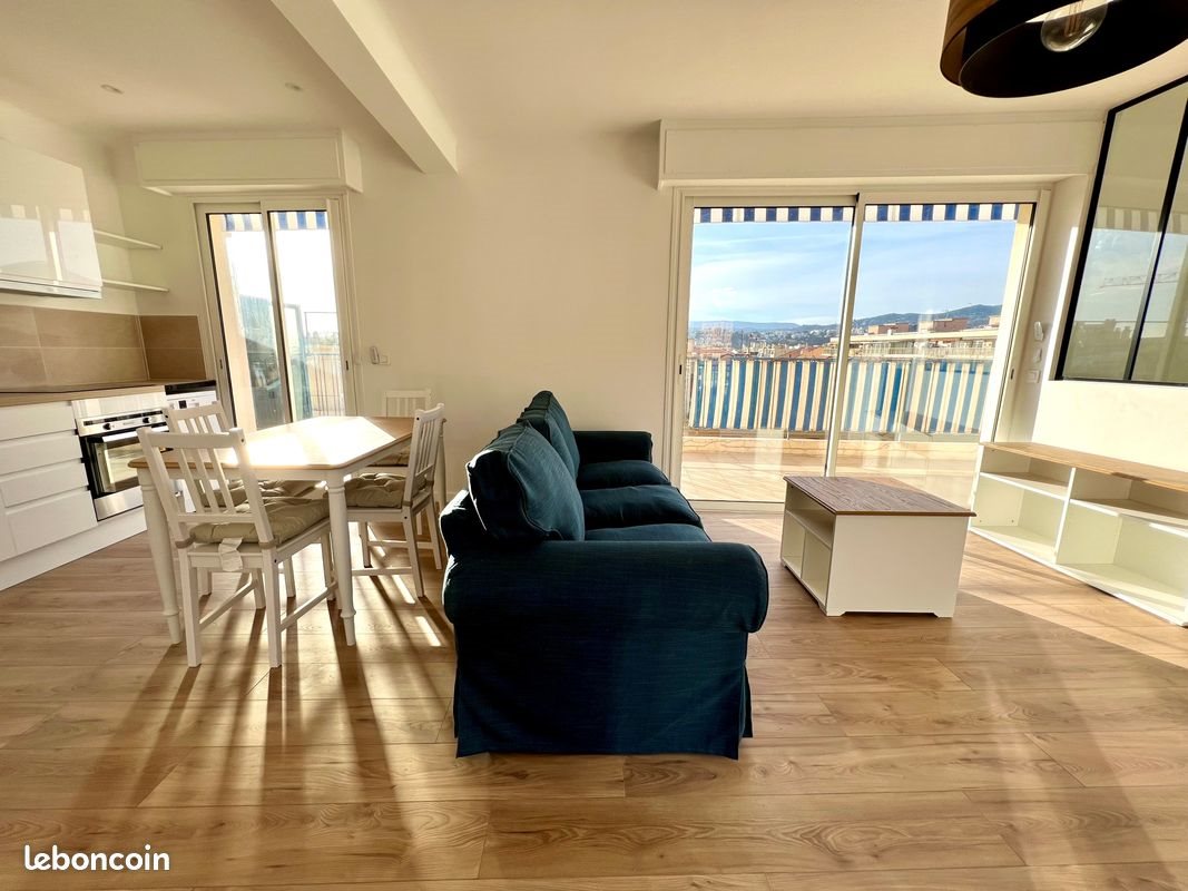 Nice Riquier - Dans un immeuble des années 70 en dernier étage, vous serez séduit par ce 2 pièces loué meublé, climatisé en parfait état traversant donnant sur une superbe terrasse à ciel ouvert de 20 m² côté Ouest et disposant d'un balcon de 9 m² côté Est. L'appartement se compose d'une belle pièce à vivre cuisine ouverte entièrement équipée, une chambre au calme, salle d'eau et wc séparé. Rare sur le marché proche de la gare en direction de Monaco. Chauffage et eau compris dans les charges. "Garant me" nécessaire pour la constitution du dossier je vous remercie à bientôt.