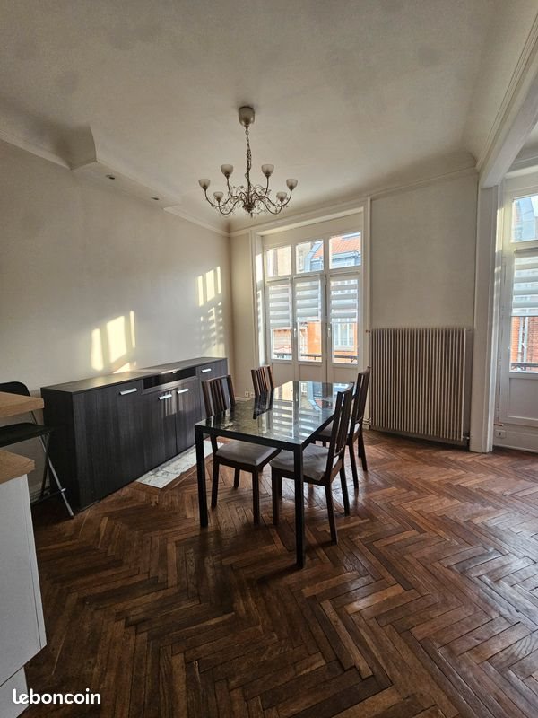 Appartement T2bis avec beaucoup de cachet, rénové, dans une petite copropriété calme de l'hyper centre de Lille composée de 4 lots. A 8 min à pied de la gare Lille Flandres, 4 min de la place de la république, des rues piétonnes et de la grand place. A 4 min à pied des stations de métro République (ligne 1) et Mairie de Lille (ligne 2) Situé au 3ème étage, sans ascenseur : 55 m² Loi Carrez (55 m² habitable) - Dpe C - Ges C L'appartement est composé d'un séjour, salle à manger, cuisine, d'une chambre, d'une salle de bain, wc séparé, une buanderie et un bureau. Une cave ouverte complète le bien. L'appartement est entièrement équipé : - Cuisine : évier, réfrigérateur, congélateur, four, plaques induction, hotte, micro-ondes, vaisselle, couverts. - Salle de bain : meuble vasque, baignoire, radiateur sèche serviette, miroir, meuble de rangement - Salon : meuble de rangement - Salle à manger : table pour 4 personnes, 4 chaises style scandinave - Chambre : lit 160x200, tablettes de chevet, liseuses, armoire avec penderies. Loyer mensuel hors charges : 850€ Charges mensuelles de copropriété : 60€ Dépôt de garantie : 1700€ Eau, chauffage, électricité à la charge du locataire, en sus. Pas de frais d'agence immobilière, frais d'état des lieux par constat d'huissier à partager entre preneur et le bailleur. Afin d'étudier votre demande, merci de fournir pour chaque demandeur ainsi que pour les cautions, les documents suivants : - Carte d'Identité - Contrat de travail - 3 derniers bulletins de paie - Dernier avis d'imposition