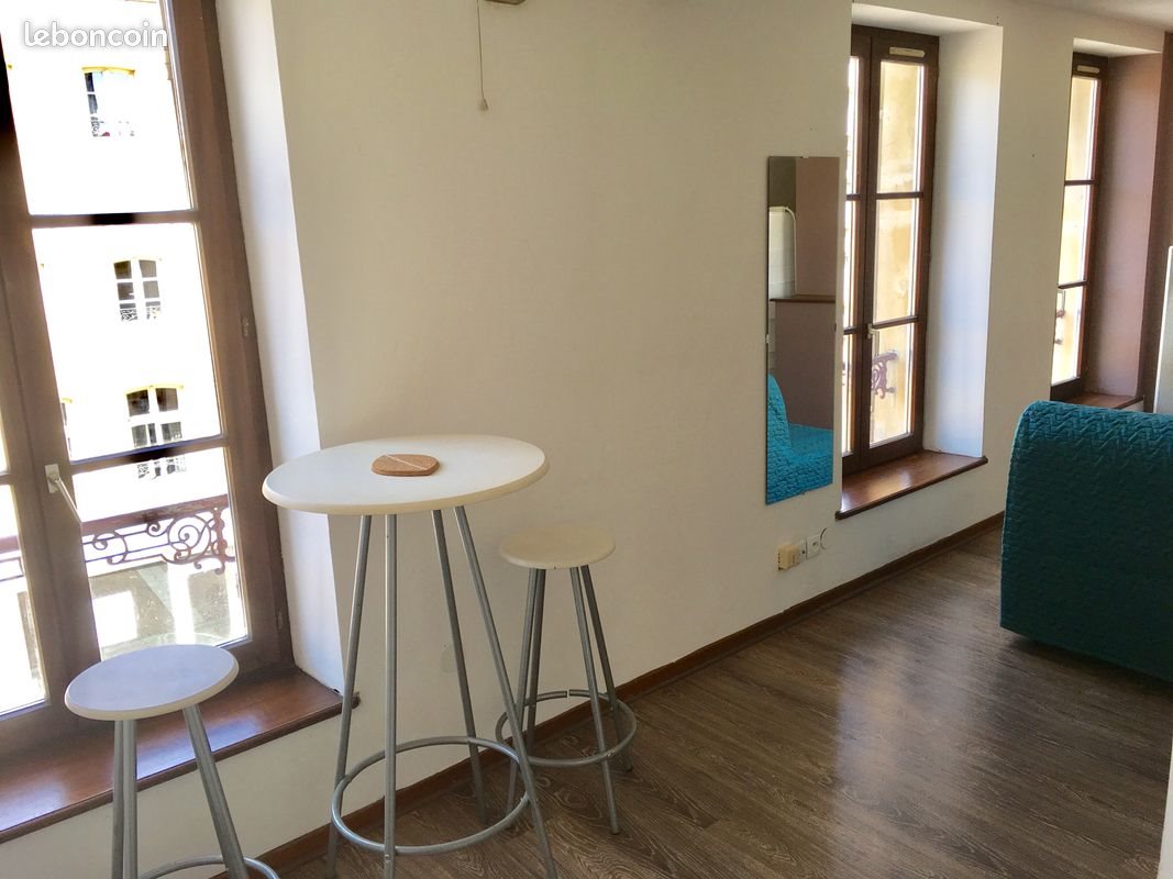 Appartement constitué d'une pièce avec lit clic-clac, bureau et penderie, ouvert sur un espace cuisine équipé avec réfrigérateur, plaques, et lave linge. La salle de bain dispose d'un Wc, d'une baignoire sabot et d'un lavabo. Radiateurs électriques récents. Appartement très lumineux (3 fenêtres!) donnant sur une place calme. L'emplacement est idéal, dans zone calme du centre ville, proche gare et transports en commun. 2Ème étage d'une petite copropriété. Disponible à compter du 09 février 2026.