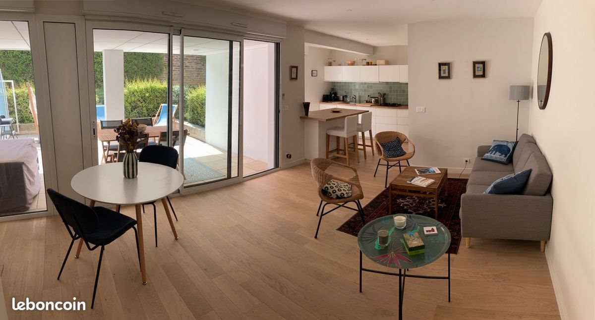 Beau T2 de 55m2 dans une résidence sécurisée avec concierge, comprenant une cuisine américaine ouverte sur le salon séjour, une chambre avec dressing et une salle d'eau attenante. L'appartement dispose également d'une terrasse de 30m2 exposée sud sans vis à vis et d'une place de parking (box fermé) en sous-sol. La cuisine est entièrement équipée (frigo, four, lave-vaisselle, lave-linge, plaque de cuisson). Appartement situé en plein coeur de Rennes, à 5 minutes à pied de la place des lices et de la station de métro Sainte Anne (lignes A et B). Loyer : 1100€ + 90€ de charges Disponible à partir du 1er janvier 2026