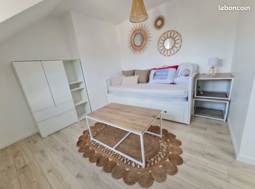 Studio meublé composé d'une cuisine lumineuse mansardée, d'une chambre et d'une salle de bain. Mobilier récent. Déco soignée. Parking disponible. Proche université, écoles, bus. Libre mi novembre.