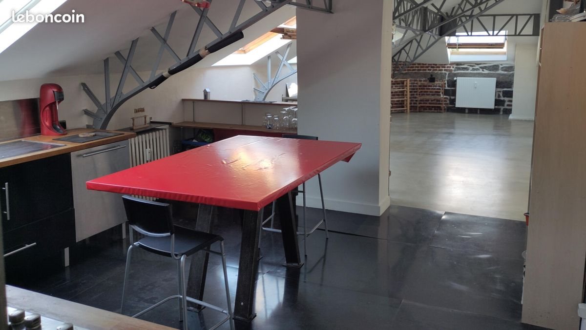 Rénovez l'appartement pour l'adapter à vos envies Appartement Indus atypique, mansardé Vous entrerez dans cet appartement très lumineux (sept velux) au design industriel par un couloir desservant les toilettes, la salle de bain et la chambre. Vous découvrirez alors la cuisine ouverte sur le grand séjour. Cette pièce à vivre vous étonnera par sa profondeur, ses pierres apparentes et ses poutrelles métalliques. D'une grande longueur vous pourrez aménager plusieurs espaces distincts ou vous préférerez utiliser toute la surface pour une pièce multifonctionnelle. La cuisine est équipée d'une grande table, d'un four, d'une plaque de cuisson au gaz et d'une hotte. Le plan de travail et l'évier sont disposés sous une fenêtre. La chambre, lumineuse grâce à son grand velux, est particulièrement chaleureuse avec les pierres apparentes et son étagère le long du mur principal. Elle possède par ailleurs un placard. La salle de bain est équipée d'une douche et d'un lavabo/vasque. Les toilettes, indépendantes de la salle de bain sont constituées d'un Wc suspendu. L'appartement dispose de deux placards avec portes coulissantes, un dans le couloir et un dans la chambre. Le diagnostic énergétique est F, tout comme les émissions de gaz à effets de serre. L'appartement est situé au cinquième (et dernier) étage (avec ascenseur jusqu'au quatrième) dans l'hypercentre (centre historique) de Saint-Étienne. À proximité de toutes les commodités. Arrêts Stas à proximité : palais de justice, tram place du peuple. Chauffage (collectif, au gaz) et eau chaude inclus dans les charges de copropriété. Surface loi Carrez : 65 m2 - Surface au sol : 80m2