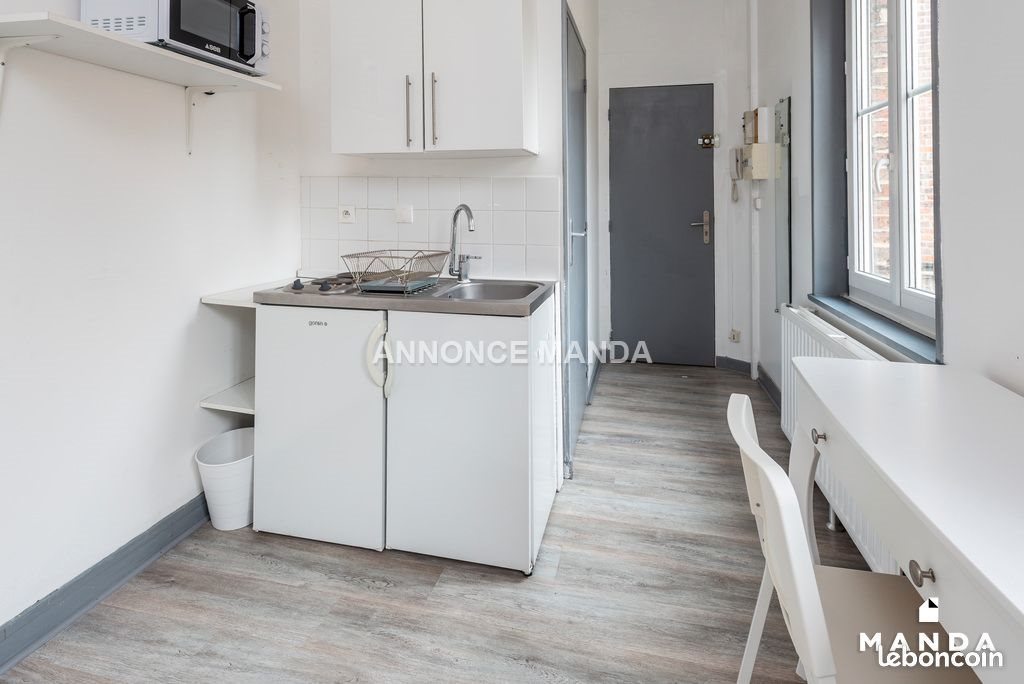 Amiens Logement Manda ! A 5 minutes de la gare d'Amiens, Manda propose un T1 en location rue Vatable. Situé au 1er étage sans ascenseur, ce studio refait à neuf est loué meublé. L'entrée dispose de l'interphone et mène à la pièce de vie. La pièce principale se compose du coin nuit avec lit gigogne et d'un espace bureau. Les deux fenêtres donnent sur la cour intérieure, très au calme. La cuisine est ouverte et équipée. La salle de bain se compose d'une cabine de douche, d'un meuble sous vasque et d'un miroir. Les Wc sont dans la salle de bain. Très belles prestations pour ce T1 en location : refait à neuf récemment, très lumineux, calme, situé dans un petit immeuble de charme de 5 logements, bien agencé, meublé et équipé, ouvertures sur cour, entrée par la cour sécurisée... Idéalement situé à 700m de la gare d'Amiens sans le quartier Saint-Anne, proche de toutes les commodités. Vous aurez un accès en transport en communs aux facultés tout en bénéficiant d'un environnement calme. Idéal pour étudiant(e) ou jeune actif(ve), n'attendez plus pour déposer votre candidature ! Référence du bien : Manda-13496 Référence annonce : Manda-Lb13496 Consommation énergétique : 464 kWh/m²/an Emission de gaz à effet de serre : 98 CO2/m²/an Honoraires à la charge du locataire : 165 € Ttc dont 45 € pour l’état des lieux Dépôt de garantie : 650 € Montant des charges : 65 € / mois Modalité de récupération des charges locatives : forfait Logement à consommation énergétique excessive : classe F