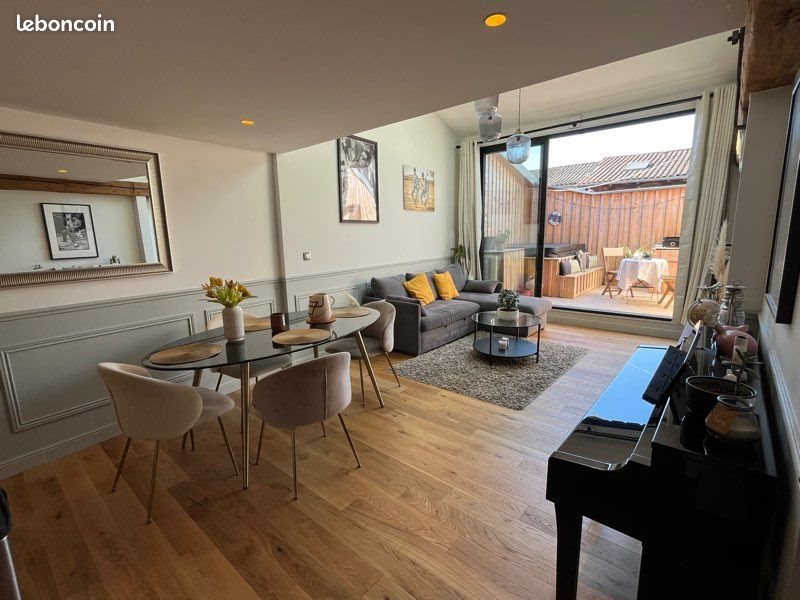 À vendre – Appartement coup de cœur aux Chartrons, Bordeaux Au cœur du très recherché quartier des Chartrons, découvrez ce magnifique appartement situé dans une petite copropriété de 6 lots, au sein d’un immeuble en pierre plein de cachet. D’Une surface de 76 m² au sol (62 m² Carrez), ce bien rare conjugue charme de l’ancien et confort moderne. Vous serez séduit dès l’entrée par sa décoration raffinée, ses moulures et ses matériaux de qualité. La vaste pièce de vie bénéficie d’une grande hauteur sous plafond, d’une luminosité exceptionnelle, d’une charpente apparente, de soubassements bois et d’un parquet massif. Elle s’ouvre sur une terrasse sans vis-à-vis avec spa, véritable havre de paix au cœur du quartier. Ce niveau comprend également une cuisine ouverte aménagée et équipée ainsi qu’un Wc indépendant. À l’étage, l’espace nuit offre 2 chambres, chacune avec sa salle de douche privative, garantissant confort et intimité. Une place de parking couverte et un local vélo complètent ce bien. Prestations haut de gamme : larges menuiseries aluminium, pompe à chaleur réversible, Velux électrique avec détecteur de pluie. Copropriété sécurisée avec de faibles charges et un calme absolu. Idéalement situé à proximité immédiate des commerces, des quais, des écoles et des transports, cet appartement offre un cadre de vie exceptionnel dans l’un des quartiers les plus prisés de Bordeaux.
