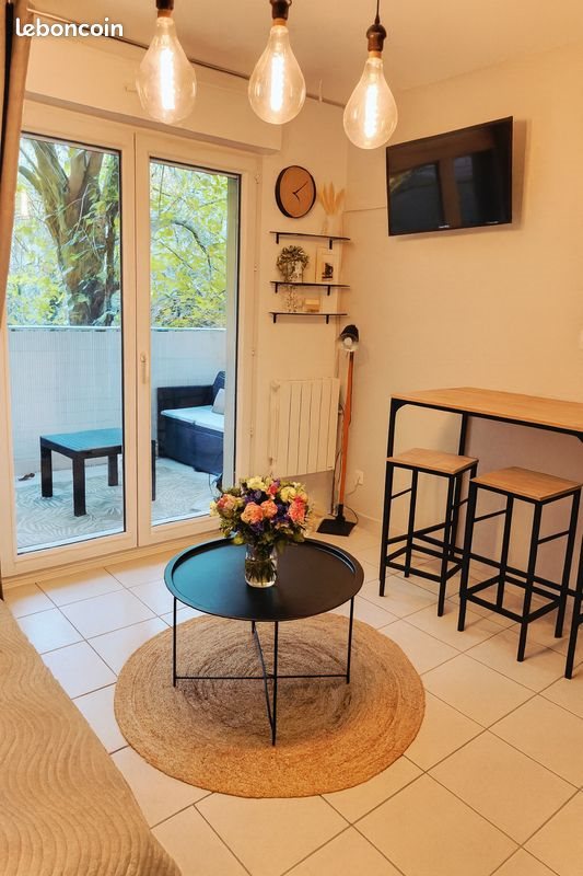 Studio de 18,15m² avec terrasse de 6,5m² situé dans la résidence le domaine de Puyricard. Résidence privée et sécurisée entourée de verdure, très calme. L'appartement est entièrement décoré et refait. Il est Meublé et équipé : Tv, Canapé lit clic-clac, lave linge, micro onde, frigo, cafetière, machine expresso, bouilloire, grille pain, salon de jardin, armoire de jardin, étendoir linge. Placard dans le séjour. Il est composé d'une salle d'eau avec wc et douche à l'italienne. Une place de parking privative dans la résidence qui est fermée par un portail. Cet appartement est à deux pas de l'institut d'administration des entreprises (Iae) et de l'université 3 Paul Cézanne. Classe énergie D Radiateurs électriques Kichenette Sans vis à vis Avec interphone Avec Ascenseur Exposition Nord Est Accès bus, juste devant la résidence, bus de ville pour descendre directement à Aix en Provence. 650€ + 40€ Charges : 690€ Charges comprises, Caution 650€ il est disponible immédiatement.