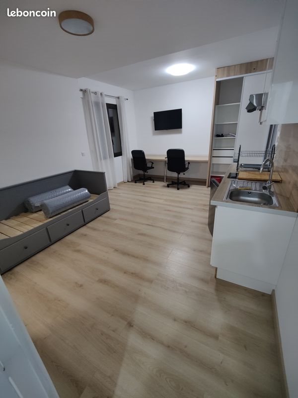 Joli Studio meublé de 25m² dans propriété voisine de la Fac des sciences de Reims, dans une propriété sécurisée avec place de parking privé, espaces verts. Entrée dans la maison avec un badge électronique. Wifi gratuit Pièce principale avec un canapé lit une grande armoire, une penderie, un grand bureau, cuisine avec plaque induction four micro-ondes, réfrigérateur congélateur, télévision. Salle de bain de 5m² avec Wc séparé, baignoire douche, lavabo avec grande glace. Volet électrique Chauffage : clim réversible Au sous-sol Salle avec machine à laver et sèche-linge Salle étude avec une grande table avec des chaises et un vidéo projecteur. Le loyer comprend le studio, le Wifi, l’entretien des espaces verts et le ménage des communs. Loyer 550 euros par mois charges calculées avec des compteurs eau et électricité. Appartement destiné uniquement à une (un) locataire sérieuse (x) et soigneuse (x). Logement éligible à l'ALS. Pas De Frais D'agence Le logement est libre dès à présent. Merci de me uniquement par téléphone jusqu’à 21h.