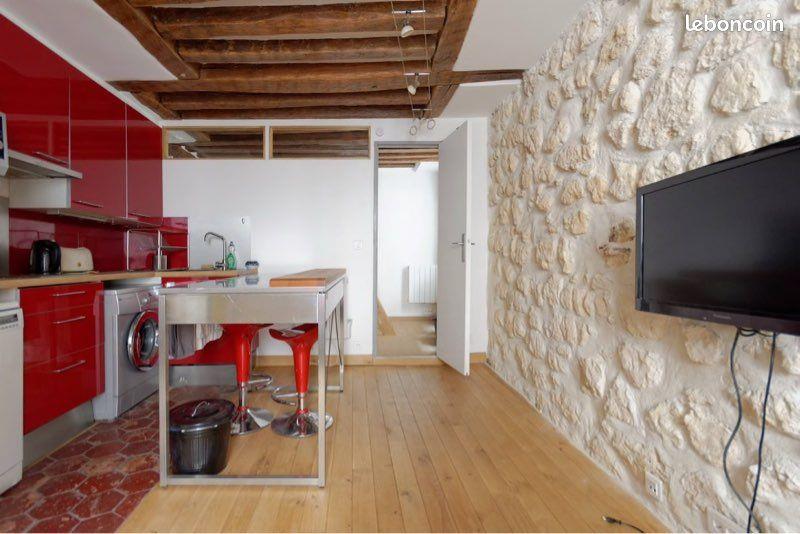 Location meublé studio/2pièce, Paris 3ème métro: Réaumur-Sebastopol près des Arts-et-Métiers. Très agréable studio/2 pièces (27m2), meublé, extrêmement calme, au 4ème étage sans ascenseur. 1 chambre lit mezzanine avec grand rangements intégrés en dessous, salon avec une cuisine ouverte, et 1 salle de douche avec wc. Beaucoup de cachet: poutres apparentes et mur en pierres apparentes. Equipé avec soin (lave-linge, lave-vaisselle, plaques induction réfrigérateur vrai congélateur, micro-ondes). Situé dans une très charmante copropriété ancienne typique du haut-Marais, avec gardien. Dpe en cours. Loyer 1295€/mois charges comprises Disponible à partir du