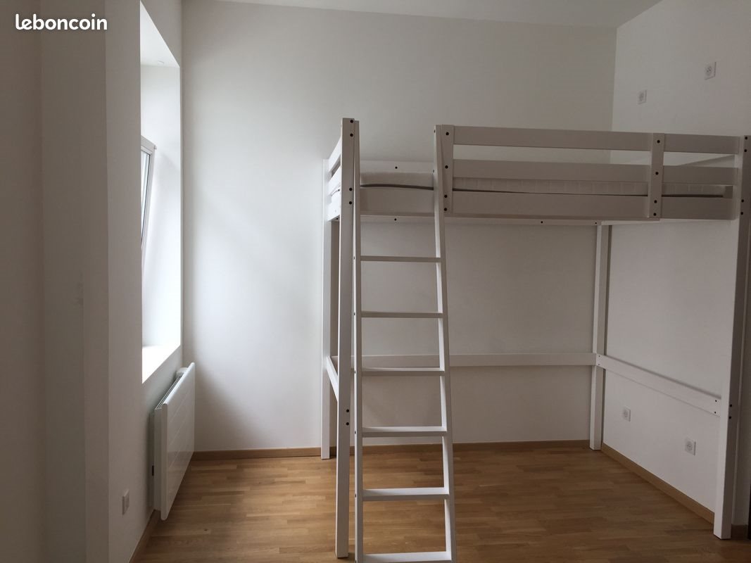 Superficie de 20m2 22 rue du Faubourg de Pierre Chauffage individuel électrique Meublé : cuisine équipée plaques et frigo, rangements, table, chaises hautes, vaisselles, lit avec matelas et literie. Lit suspendue permettant de positionner un bureau canapé en dessous Internet compris dans les charges via le cable Volet électrique Salle de bain avec douche, Wc suspendu et rangements Cave individuelle, local vélo