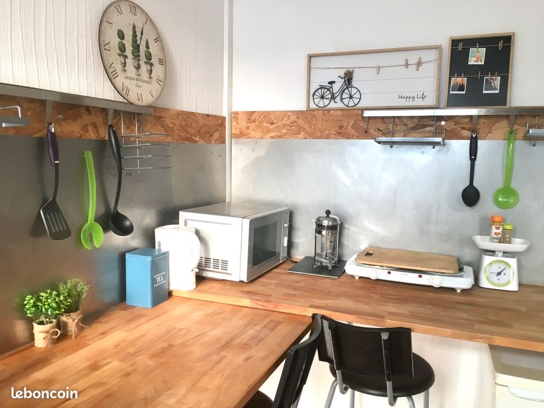 Grand F1 Proche Toutes Commodités – Quartier Université, rue Berthelot ✓Au premier étage (bien exposé très lumineux) d'une copropriété calme et bien tenue, nous vous proposons notre appartement plein de charme et entièrement équipé. Il se compose : - d'une cuisine complète : frigo, four, plaques de cuisson, accessoires, grand plan de travail avec crédence, vaisselle, couverts,… et sa table à manger conviviale et ensoleillée, - d'une salle de bain lumineuse (avec douche hydro-massante, lavabo avec grand miroir et espaces de rangement, Wc et lave-linge), - ainsi que d'une grande pièce à vivre (avec vastes placards intégrés, lit mezzanine deux places, table, canapé-lit, espace bureau, deux grandes lampes ajustables, étagères,…). L'aménagement a été optimisé pour accueillir vos activités du jour et garantir le confort de vos nuits. Situé rue Berthelot (près de l’université, du restaurant universitaire Crous et du gymnase), il est à 1 minute à pied d’un grand Lidl tout neuf et d’une boulangerie, à quelques pas d’une pharmacie, et des transports desservant le centre-ville / la gare. Facilités de stationnement dans le quartier. Le montant du loyer est de 400 euros + 30 euros pour les charges (ces dernières comprenant les services de propriété ainsi que l'eau froide). La fibre est disponible pour un abonnement internet. Appartement éligible aux aides au logement. Disponible le 1 mars. Possibilité de location courte durée pour un stage jusqu'à l'été. Premier contact par mail, avec description de votre situation. Merci.