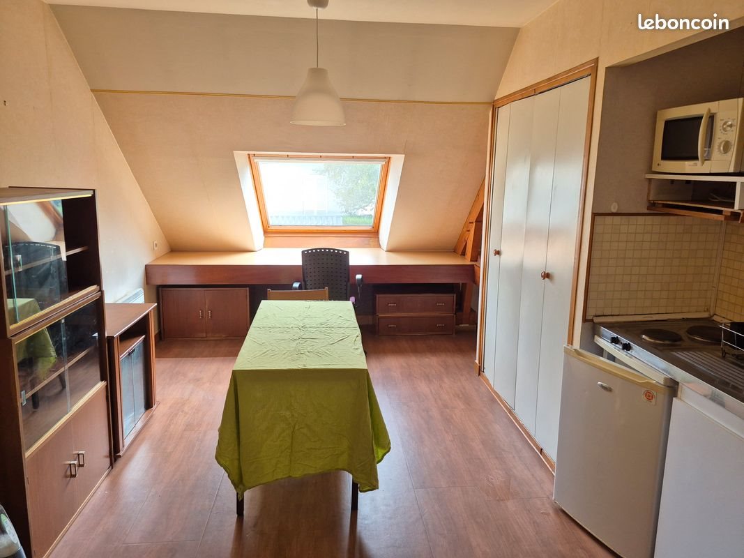 Nous louons un studio de 21m² meublé et indépendant de notre maison, disponible début mars, comprenant : entrée - séjour avec lit simple - kitchenette -salle d’eau avec douche - Wc indépendant A proximité du métro Gros chêne ligne B. Le loyer est éligible aux Apl. 470 € (hors chauffage/électricité)