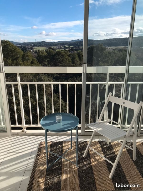 Aix Les Milles, chemin de Saint Hilaire Spacieux et lumineux studio de 27,48 m², meublé Situé au 4 étage (sur 4) avec vue campagne et Sainte Victoire. Ascenseur Résidence compte une soixantaine de studios. L'appartement : Composé de pièce principale, loggia fermé, salle d'eau et coin cuisine. Cuisine avec réfrigérateur, micro-onde, plaque de cuisson 2 foyers, placards. Placards dans l'entrée Canapé clic-clac, table, 2 chaises, étagère dans la pièce principale. Détecteur de fumée, interphone. Les charges comprennent la copropriété, eau froide, ascenseur. Dépôt de garantie 1000 €. Libre à partir du 17 février. Avant de postuler: vérifier l'emplacement. Un véhicule est très fortement conseillé, la résidence est situé dans un parc boisé en dehors du village Pour préparer votre dossier: justificatifs d'identité et revenus (vous et garants si lieu), attestation d'activité (travail, études). Pour visiter, merci de m'envoyer un message en vous présentant brièvement.