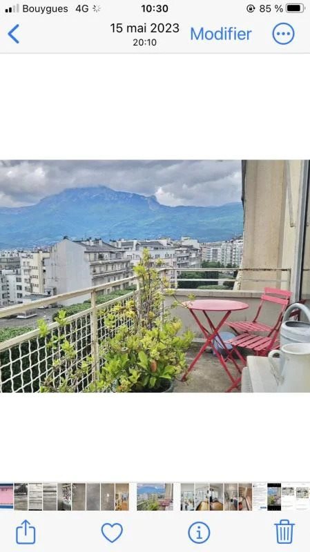 Appartement de 63 m2 à louer sur Grenoble T3 de 63m2 au 8 ème étage, Ascenseur Exposé plein Sud donc consommation chauffage faible Cuisine équipée ouverte sur séjour de 25 m², donnant sur un grand balcon de 10 m² 2 chambre de respectivement 14 m², avec chacune une salle de bain et un dressing Fibre Cave saine WC Séparés Chercher un logement, c'est l'enfer, alors on a créé 123 Loger pour vous simplifier la vie. Combien ça coûte ? Vous réglez le pass de 29 euros (24 euros pour les étudiants). Le pass est mensuel, votre profil reste actif tant que vous restez abonné-e. Sans engagement, vous pouvez vous désabonner très facilement. Nous offrons une garantie satisfait-e ou remboursé-e pendant 3 mois. Comment ça marche ? Sur 123 Loger, ce sont les propriétaires qui contactent les locataires et ça change tout. 1- Vous définissez vos critères : villes, surface, budget, etc 2- Vous décrivez votre profil locataire : Cdi, étudiant, indépendant, revenus, garant, etc… Une fois pour toute ! 3- Les propriétaires consultent votre profil et vous contactent directement. À bientôt sur 123 Loger.