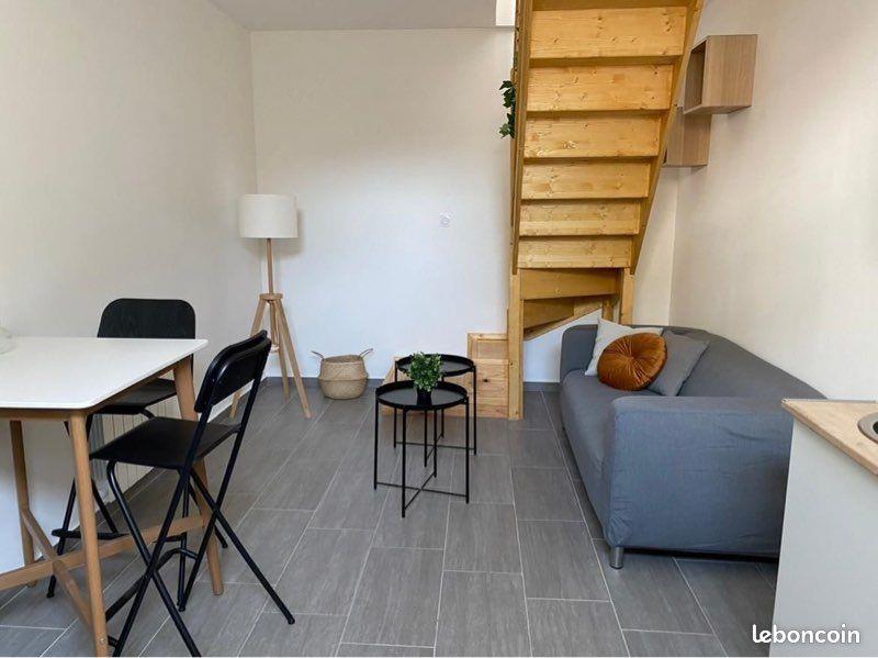 Loyer de 470€/mois charges comprises (hors électricité et eau) - A destination d'étudiants Appartement « triplex » meublé refait à neuf en 2023, situé au 54 rue des Docteurs Charcot, à proximité de la faculté campus Tréfilerie (8 min à pieds) et de toutes commodités (commerces, arrêt de tram à 50m). Surface de 35 m2 donnant sur cour, calme, idéal pour étudiants : - 1er niveau : une cuisine équipée (plaque de cuisson à induction, frigo, four, four micro-ondes, machine à laver) et un coin salon - 2ème niveau : une chambre (lit double 140 cm, armoire) et une salle de bain (douche, sèche serviettes, meuble de salle de bain, Wc) - 3ème niveau : un coin bureau et un meuble de rangement + rangements disponibles sous la sous-pente