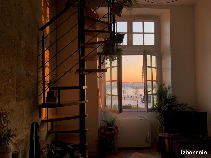 Location Triplex 37m2 (dont 25m en loi Carrez) au cœur de bordeaux avec une vue imprenable à tous les étages sur les quais de bordeaux et le pont de pierre. L’Appartement se compose d’une cuisine avec un bar ouvert sur le salon, un escalier en colimaçon qui amène a l’étage supérieur. Espace dressing avec possibilité d’y mettre un bureau si télétravail (sera déménagé pour la location), grande salle de bain ouverte sur la vue avec baignoire deux places. Toilette indépendant derrière la baignoire. Enfin une échelle meunière monte jusqu’à la mezzanine de 12m2 avec toit en alcôve formant une voûte au dessus du lit, avec la vue sur les quais depuis le lit ! En installation non apparent sur les photos des poteaux + cordage au pied de la mezzanine qui n’obstrueront pas la vue mais feront office de barrière de protection. Plus de photos sur demande. Appartement loué meublé, disponible a partir du 9 février. Machine à laver fournie, frigo avec congélateur, microonde, plaque double foyer à induction et four. Au plein cœur d’un des quartiers les plus branchés de bordeaux, Au pied de la porte cailhau, toutes commodités sur la place du palais, lignes de tram C + D + A porte de Bourgogne, et 10 min à pied des quinconces pour la ligne B direction toutes les facs et écoles de commerces. Loyer 850€/mois charges comprises. Électricité à la charge du locataire. Premier contact via messagerie leboncoin. Visites organisées dès le début de semaine prochaine. Idéal pour jeune couple ou étudiant, garanties exigées + caution deux mois de loyer.