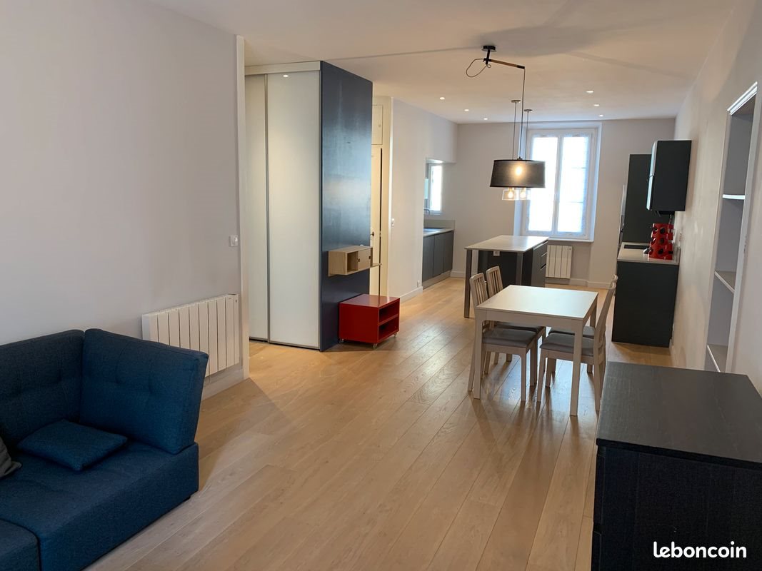 : Location - Appartement - 2 pièces + cuisine - 63 m² - Au cœur du quartier Championnet et proche de la caserne de Bonne, nous proposons ce grand appartement T2 meublé complètement rénové. Vous trouverez: - une grande pièce conviviale traversante de 40m2 comprenant salon avec grand canapé, salle à manger et belle cuisine ilot totalement équipée (lave vaisselle, lave linge, four, micro-onde, plaque induction, frigo, hotte design, équipement de cuisine...). - une chambre comprenant un grand dressing sur mesure et lit double - une salle d'eau avec douche à l'italienne et meuble avec vasque à poser contemporain - Wc séparés - placards de rangement sur mesure - balcon - grande cave de 10m2 L'appartement est équipé des prestations: - parquet massif chêne blanchi posé sur isolant - faux plafond isolé phoniquement pour un confort de vie garantie par rapport aux voisins - vmc - double vitrage - chauffage électrique individuel basse consommation - meublé et équipé - très calme - 2ème étage d'une petite copropriété bien tenue et accès sécurisé par digicode arrêt Tram E situé à 100m proche centre ville et marché Estacade Disponible le 29/11. Loyer Hc : 860 €. Charges mensuelles : 70 €. Dpe en cours de réalisation