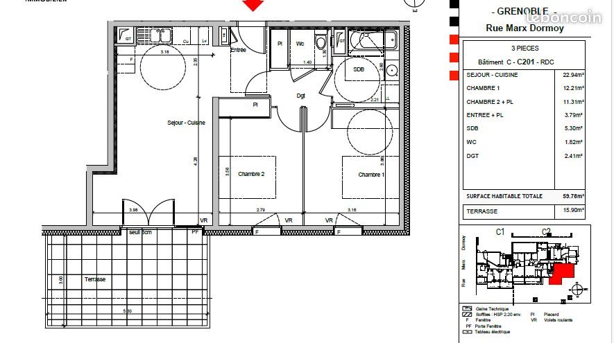 Bonjour Appartement neuf à louer résidence les Ateliers à Grenoble, disponible de suite. 2 chambres, état neuf avec terrasse. Loyer 750€/mois