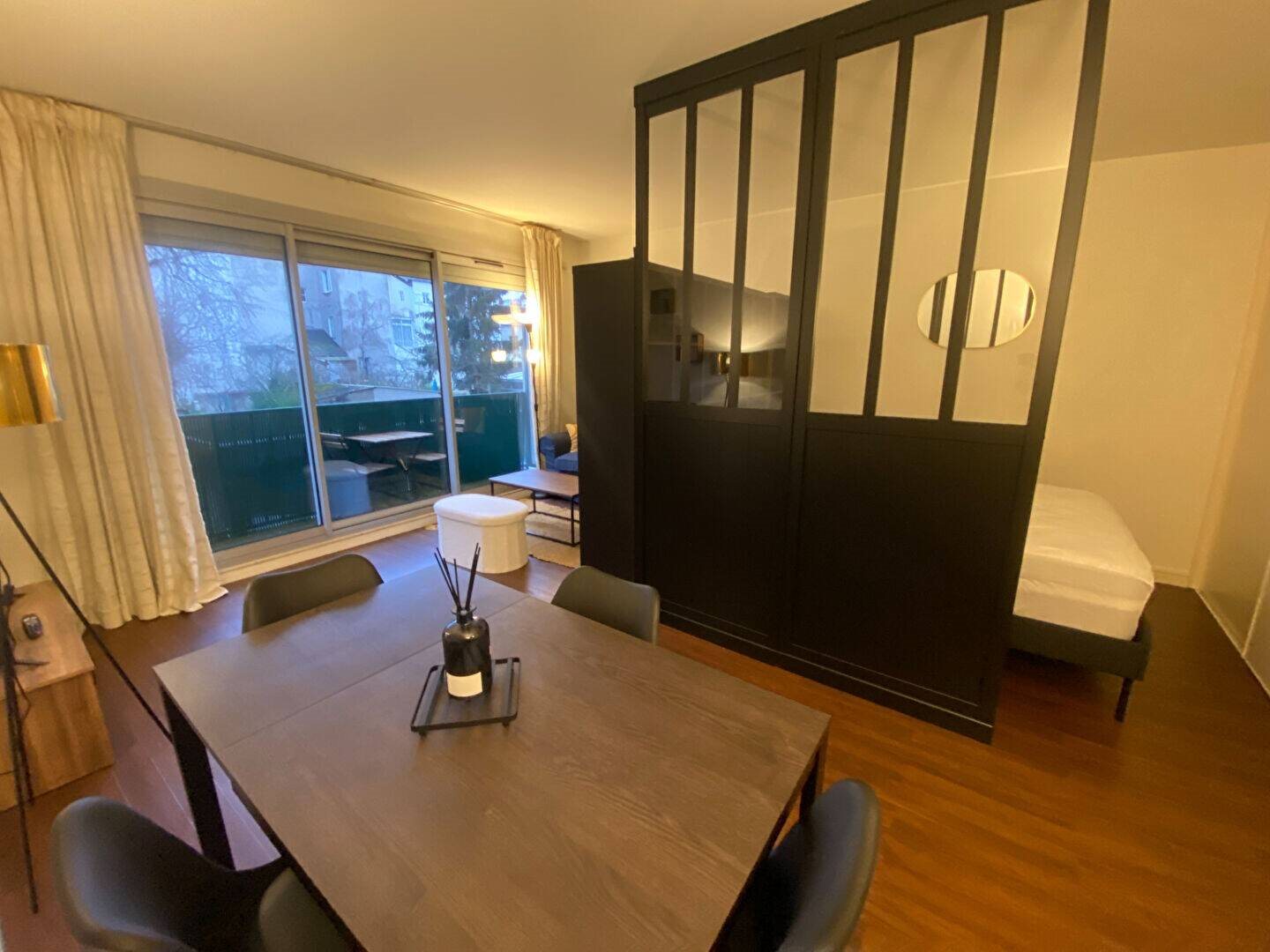 Tours centre Blanqui, 29 rue Avisseau. Disponible à partir du 16 décembre 2025. Appartement meublé de 30.85m² avec Parking Privatif, des équipements de qualité, Tv avec fibre et balcon. Détail des pièces : une entrée donnant sur un séjour avec table, canapé et télévision, une cuisine aménagée et équipée (plaque de cuisson, hotte, réfrigérateur, micro-onde, cafetière, machine à laver et lave vaisselle), un coin nuit séparé avec une verrière et comprenant un placard, et une salle d'eau avec Wc. Place de parking privative à l'extérieur et balcon avec table et chaises. Loyer : 700 € Cc (chauffage et eau froide compris). Visite virtuelle sur demande.