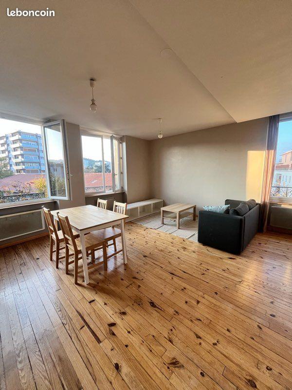 Appartement meublé T3 2 chambres, 62m², lumineux et calme. Place Carnot Tram (Tram T1 T2) - Saint Etienne 42000 - 3 minutes à pieds de la cité du Design et 12 minutes à pieds de la place Jean Jaurès. Cuisine équipée ouverte sur le salon avec 4 plaques électriques, frigo, hotte, four, lave vaisselle et de nombreux rangements Salle de bain avec douche et fenêtre Wc séparés Très lumineux avec 4 grandes fenêtres côté salon exposé sud/ouest avec canapé 2 places et une table basse 2 chambres à l’étage avec 2 lits 140 190 avec matelas et bureau dans chaque chambre Luminaires dans toutes les pièces Parquet couleur chêne pièce de vie et carrelage salle de bain 3 ème étage (et dernier étage) sans ascenseur De nombreux placards et rangements Porte serrure 3 points pour l'appartement et accès avec badge à l'immeuble Co-propriété bien tenue, propre et très calme. Dpe D Idéal Étudiants, location bail indépendant, 330€/ mois la chambre Ou location bail solidaire à 660€/mois