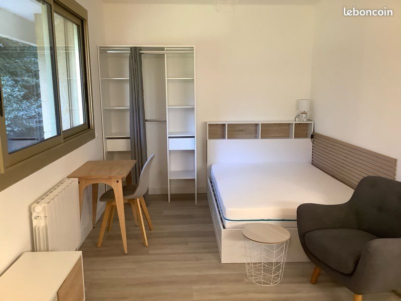 Grand studio meublé de 23m² intégralement rénové à neuf – 1ère mise en location, au calme, donnant sur la verdure apaisante du parc de la Mathilde. Équipements haut de gamme (chauffe-eau et radiateur Sauter, literie « meilleur choix Que choisir », baie vitrée neuve aux dernières normes d’isolation). Séjour de 17m² avec cuisine équipée : plaque induction, frigo 120L (107L + réfrigérateur 13L), micro-onde, emplacement de lave-vaisselle ou lave-linge (non fourni) avec arrivée eau + évacuation. Table extensible. Coin salon avec fauteuil Alinea et meuble Tv, bureau. Coin nuit : lit avec rangelent, dressing. Salle de douche : grande douche à l’italienne 120x80, sèche-serviette, toilettes. Le bien est situé dans la Résidence des Roches D’Or, en rez-de-chaussée, au calme et donnant sur le parc de la Mathilde. Résidence gardée, stationnement facile sur le parking (fermé) de la copropriété. Un dossier de location complet sera exigé avant toute visite – à déposer sur le site gratuit proposé par l’Etat « Dossier Facile ». Premier contact par messagerie leboncoin une fois votre dossier validé par le site. L’Eau froide est comprise dans la provision pour charge. Compteur électrique individuel (chauffage, chauffe-eau, plaque…) Fibre optique dans la résidence Possibilité de cave en sus. Si l’annonce est en ligne, le studio est disponible.