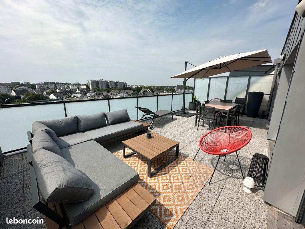 À vendre : superbe appartement T5 en duplex de 102 m², situé au 5ᵉ et dernier étage d’une résidence récente (2021) avec ascenseur, dans le quartier recherché Cleunay–Mabilais, à proximité du métro, des commerces et du centre-ville de Rennes. Un bien rare alliant lumière, confort et grands espaces extérieurs : Niveau principal : Une belle entrée avec grand placard aménagé, un Wc séparé, et une pièce de vie spacieuse et très lumineuse exposée plein Sud, avec cuisine ouverte. Le séjour s’ouvre sur une magnifique terrasse de 34 m², idéale pour les repas en extérieur et les moments de détente. Une suite parentale avec salle d’eau privative donne accès à une seconde terrasse de 28 m², pour profiter du calme et de la lumière tout au long de la journée. Étage supérieur Trois chambres, chacune avec accès à une 3ᵉ terrasse de 16 m², ainsi qu’une salle de bain avec Wc. Les plus : Appartement traversant, très lumineux Trois terrasses totalisant près de 80 m² d’extérieur privatif Deux garages fermés en sous-sol, dont un avec prise renforcée pour véhicule électrique Résidence moderne (construction 2021), bien entretenue et sécurisée Accès rapide à la rocade, au métro et aux commodités Informations clés : Surface habitable : 102 m² Type : T5 duplex Étage : 5ᵉ / dernier (ascenseur) Exposition principale : Sud Résidence : 2021 2 garages fermés dont 1 avec prise renforcée Quartier Cleunay–Mabilais, Rennes Prix : 549 000 € Disponible à partir de l’été 2026 ? Photos et visites sur demande ? Agences s’abstenir