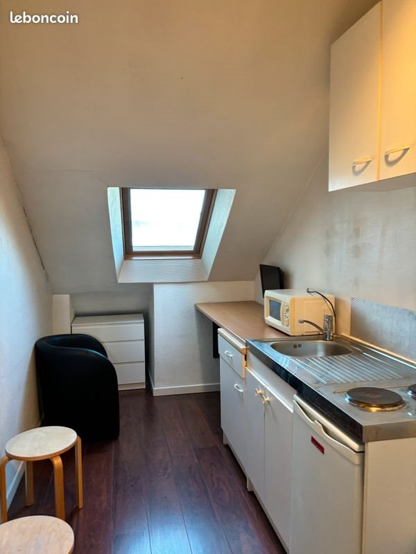Rennes Centre Ville République, au pied du métro et bus Petit Studio meublé et équipé offrant pièce principale avec coin cuisine, coin bureau et coin nuit en mezzanine (lit 2 places). Libre de suite. Loyer 360 € + 20 € de charges parties commune Fibre, Edf et Eau à la charge du locataire en sus Immeuble trés calme, digicode. Au dernier étage avec ascenseur