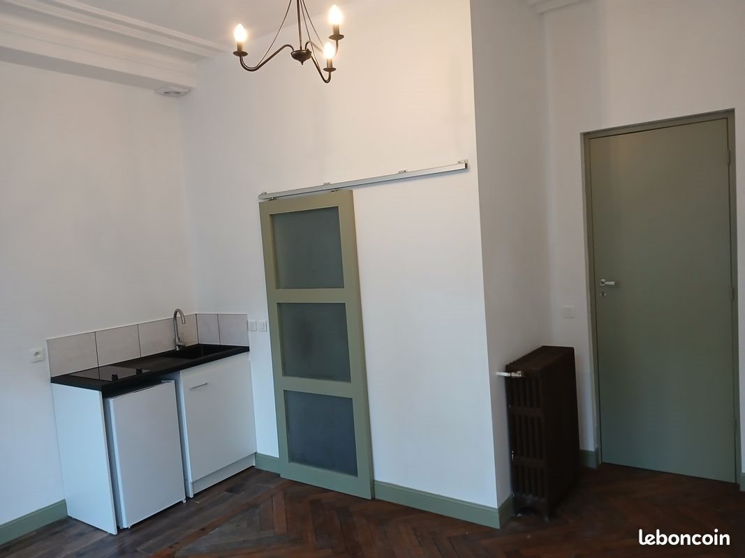 Studio au Rdc ,vous entrez dans un immeuble, sécurisée par un badge. La porte de l appartement est à trois points de fermeture et les fenêtres double vitrage disposent de volets en bois massif.Le sol est en parquet ancien dans la pièce de vie ,avec une grande hauteur sous plafond. Il dispose d 'un point kitchenette ,avec une plaque vitro cérame deux feux et un [Url masquée pour votre sécurité] salle de douche dispose d 'une douche avec une porte en verre,d 'un lavabo avec miroir et d 'un WC.Le sol est en carrelage. Libre de suite, direct propriétaire . Loyer 370€ plus 50 pour les charges. Dans les charges sont comprises l électricité, l'eau et le chauffage .