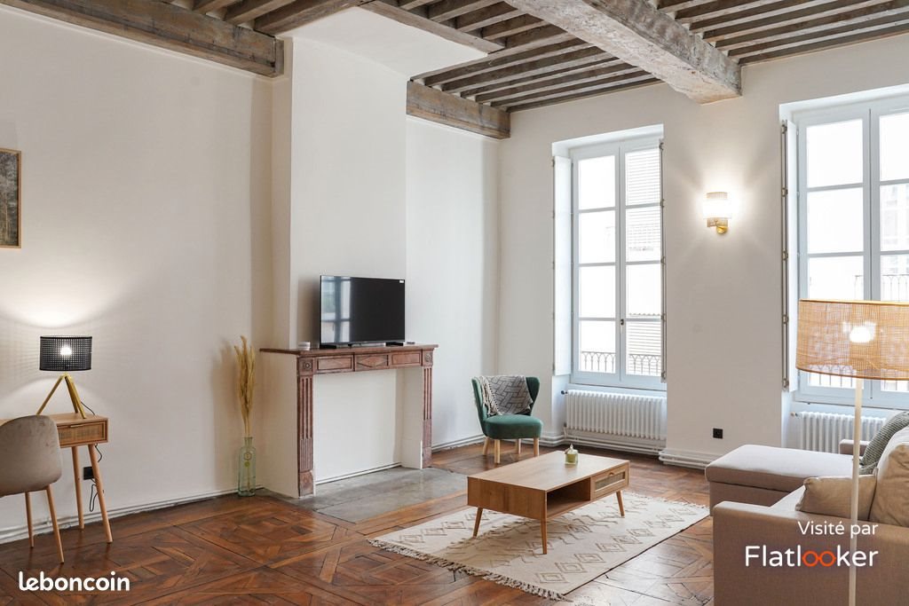 Situé à Lyon, ce T5 meublé rénové se trouve rue des Capucins. Non loin de l'arrêt de métro Croix Paquet, le logement est en plein centre-ville, tout proche de la place des Terreaux et des commerces. L'appartement traversant a beaucoup de cachet (parquet ancien, belle cheminee, un mur en pierre) et est composé d'un vaste séjour et de trois chambres. La cuisine est ouverte et équipée, la chambre parentale dispose d'un lit double et les deux autres chambres se composent d'un lit simple en mezzanine et d'un bureau. Vous disposerez de deux salles de bains : une avec baignoire, et l'autre avec cabine de douche. Ce joli T5 en location n'attend plus que vous !