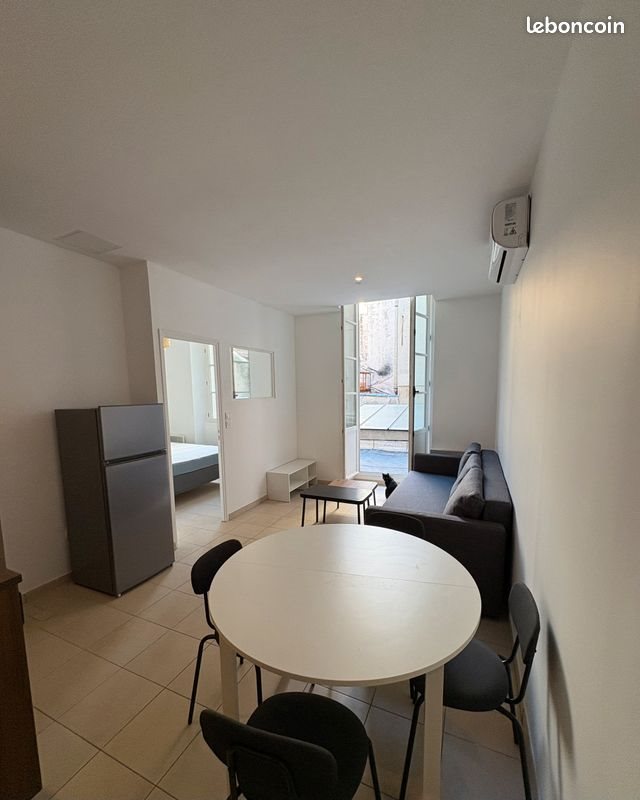 T2 idéalement situé à proximité de tous les commerces et transports disposant d'une grande terrasse au premier étage sans vis à vis. L'appartement a été entièrement refait à neuf et est entièrement équipé Machine à laver séchante etc.. Il est composé d'un dressing à l'entrée d'une cuisine équipée d'un salon d'une chambre avec sa salle d'eau. L'appartement est très agréable à vivre entièrement climatisé. Pour les dossiers merci de me préciser dès le premier mail type de contrat niveau de rémunération et garants, si l'annonce est en ligne le bien est disponible