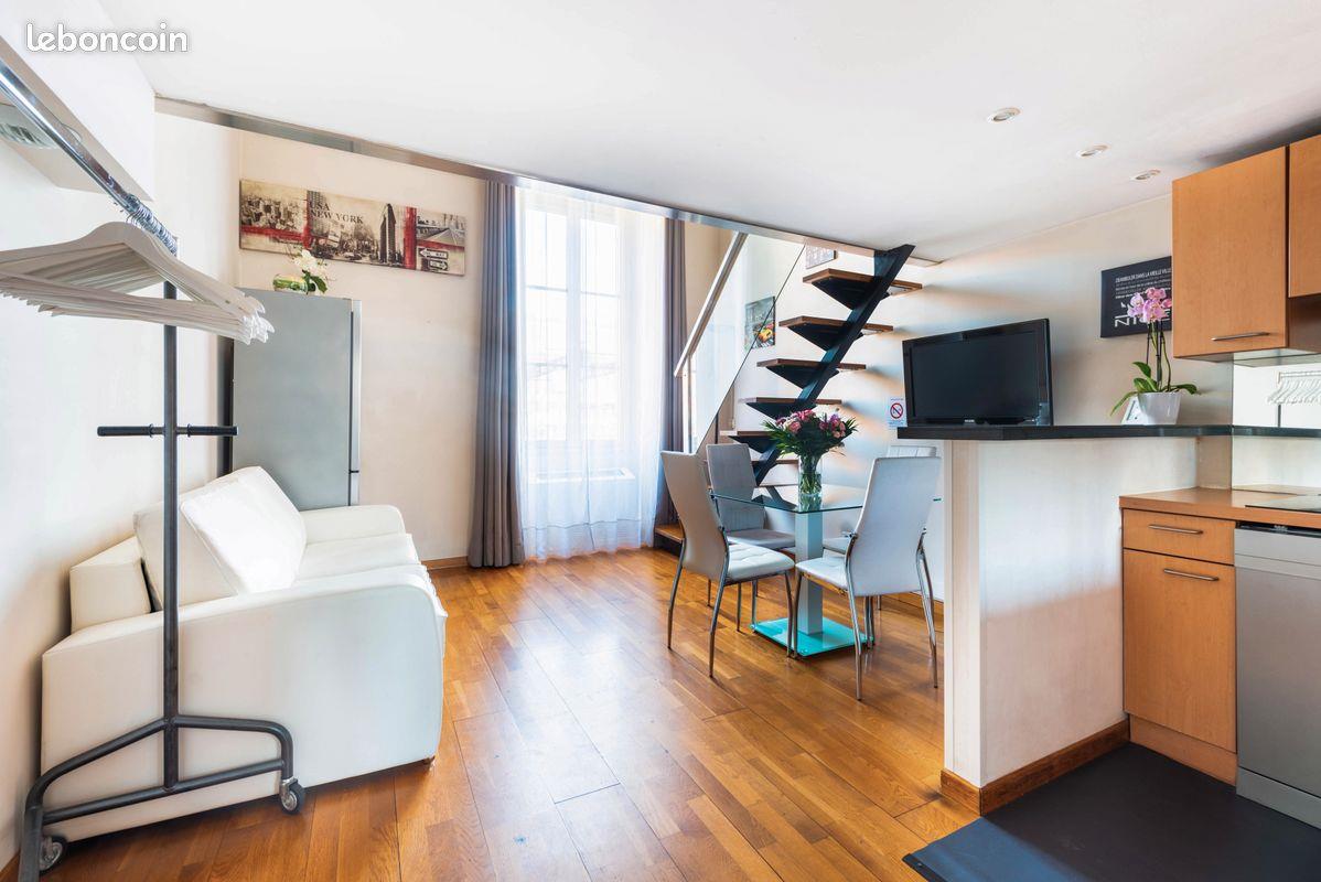 Nice – place Massena – un appartement deux pièces en duplex aménagé et équipé. Un séjour avec canapé, table à manger, télévision et vue sur la place Masséna, une cuisine ouverte. A l’étage une chambre avec un lit, une salle de bains avec douche. Un joli immeuble historique, ascenseur à partir du premier étage, appartement situé au deuxième étage. Toutes les commodités, magasins, arrêt du tramway Massena juste à côté de l’immeuble. Wifi, clim. L'appartement est proposé en bail mobilité ou bail civil - durée de 1 à 5 mois maximum. Me pour les détails.