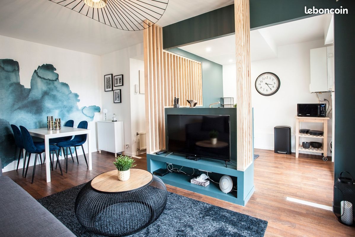 À louer, charmant T2 meublé de 43 m² en rez-de-chaussée, situé dans une petite rue calme d’un immeuble bien entretenu. Agencement : - Salon spacieux avec canapé-lit et Tv - Cuisine ouverte entièrement équipée (four, plaques, réfrigérateur, vaisselle, etc.) - Chambre avec lit King Size (180x200) et grands rangements - Salle de bain moderne avec douche et rangements - Box fermé en sous-sol inclus Prestations incluses : eau, électricité, gaz, internet, Tv. Appartement lumineux, fonctionnel et prêt à vivre, idéal pour un couple ou une personne seule recherchant le confort et la tranquillité.