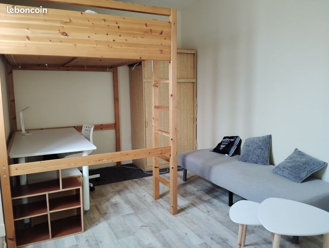 Particulier loue T1 meublé avec cuisine et chambre séparée L'appartement se situe au rdc d'un petit collectif avec une entrée séparée dans une impasse proche du rond point de Rennes et de la rue Paul Bellamy. Dans la pièce principale : grand bureau et lit mezzanine 2 places, grande armoire avec rangements et petit coin salon. Cuisine séparée de 6m2 avec table, chaises, kitchenette, frigo, four, nombreux rangements. Petite salle d'eau avec lucarne. Une cave vient compléter l'appartement. Possibilité de se stationner devant l'appartement (impasse privée sans stationnement payant) L'appartement est propre, fonctionnel et calme, idéal pour un étudiant. Libre à partir du 22 février. Loyer : 450 euros + 35 euros de charges.