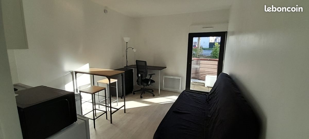 Particulier loue Studio meublé refait à neuf 18 m² + balcon 6 m² + place parking extérieure (quartier Jonelière-le Petit Port - avenue du séquoia) dans résidence avec accès sécurisé, 1er étage vue sur jardin exposition Sud. Quartier résidentiel et très calme. Situation idéale pour étudiant accès à pied au Staps, Campus Nantes Tertre, Ecole Sup de Commerce Audencia, Ufr Droits, Ecole Centrale. A proximité des commerces et commodités (U Express La Bourgeonnière). Ligne 2 du Tram (arrêt Recteur Schmitt) à 5mn. Entrée avec placard/penderie, Salle de bain avec sèche-serviettes, douche et wc. Cuisinette avec frigo, plaques électriques, micro-onde grill, ustensiles de cuisine et vaisselle. Clic-Clac, table et tabourets hauts, bureau et chaise. Loyer : 505€ + charges : 30€/mois (eau comprise). Chauffage Electrique Individuel et fibre optique. Libre de suite.