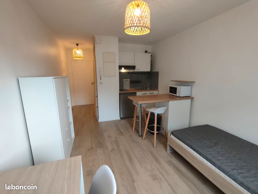 Studio disponible fin mars. Studio rénové entièrement en 2022, tous les équipements sont comme neufs. Le studio est équipé d'une machine à laver. Le lit a été remplacé par un lit gigone Hemnes de chez Ikea. La résidence est calme et située très proche des transports et du centre-ville (2 min à pied) et dispose d'un local à vélos. N'hésitez pas à me pour tout renseignement complémentaire.