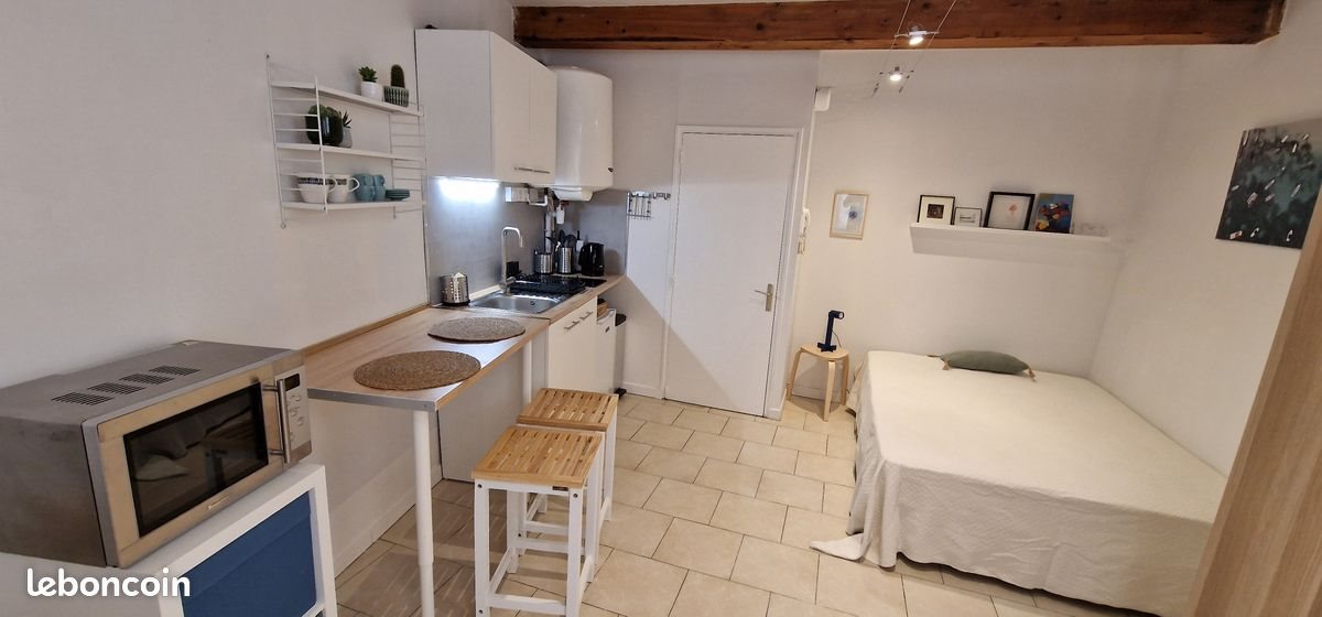 Studio meublé centre ville Aix, premier étage donnant sur une rue calme et peu passante. Rénové il y a deux ans . 21 m². Douche, toilettes séparées. Dpe : D Montant estimé des dépenses annuelles d'énergie pour un usage standard : entre 520 et 740 Euros) par an. Prix moyens des énergies indexés sur l'année 2021 abonnements compris) Les informations sur les risques auxquels ce bien est exposé sont disponibles sur le site Géorisques :