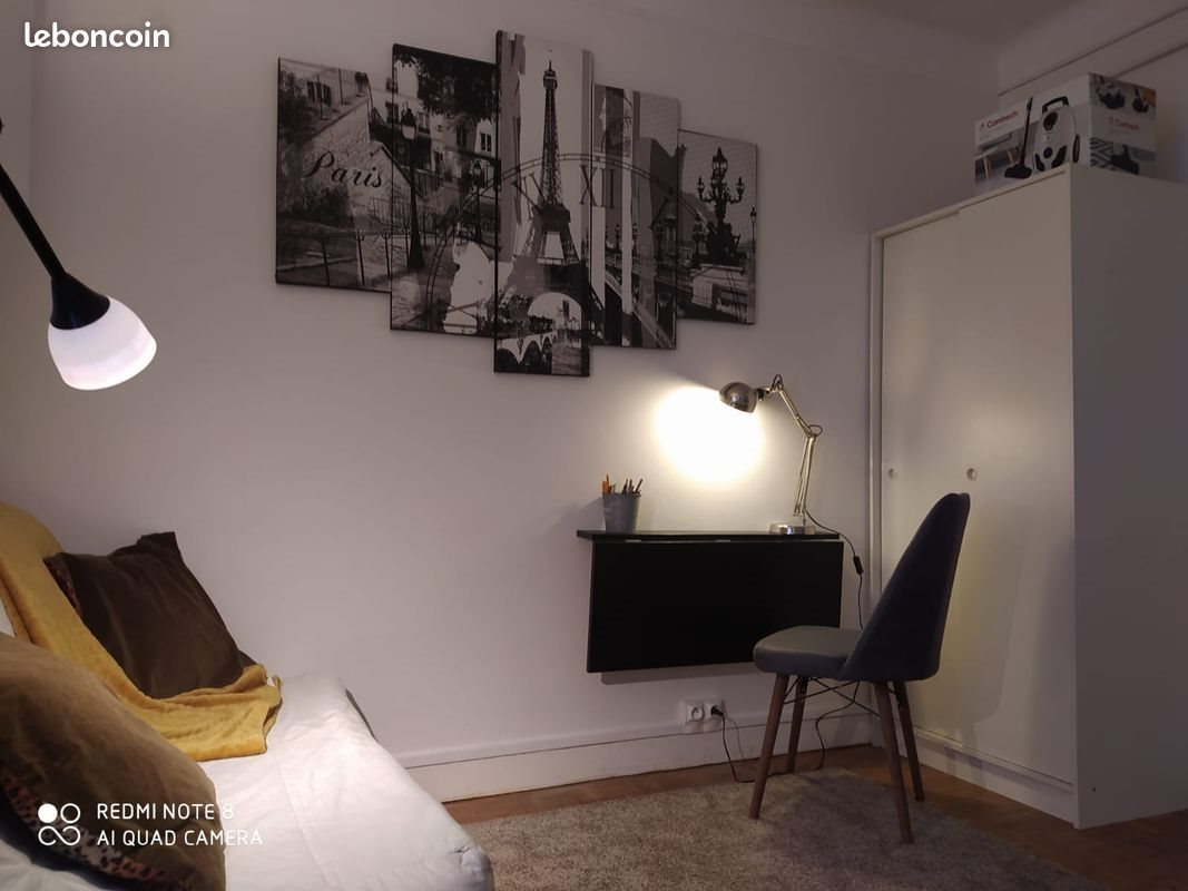 Jolie studette Paris 16 avec vue sur la tour eiffel et balcon avec chaise et table 12 metr carré. Coin cuisine vaiselle etdouche canapé lit bureau.toilettes sur le pallier un autre utilisateur seulement. Dans résidence sécurisée avec gardien et caméra dans l' entree et digicode Idéal pour étudiant Caution 2 personnes obligatoire Libre le euros par moischarges comprises Métro bus à 2 minutes commerces à côté