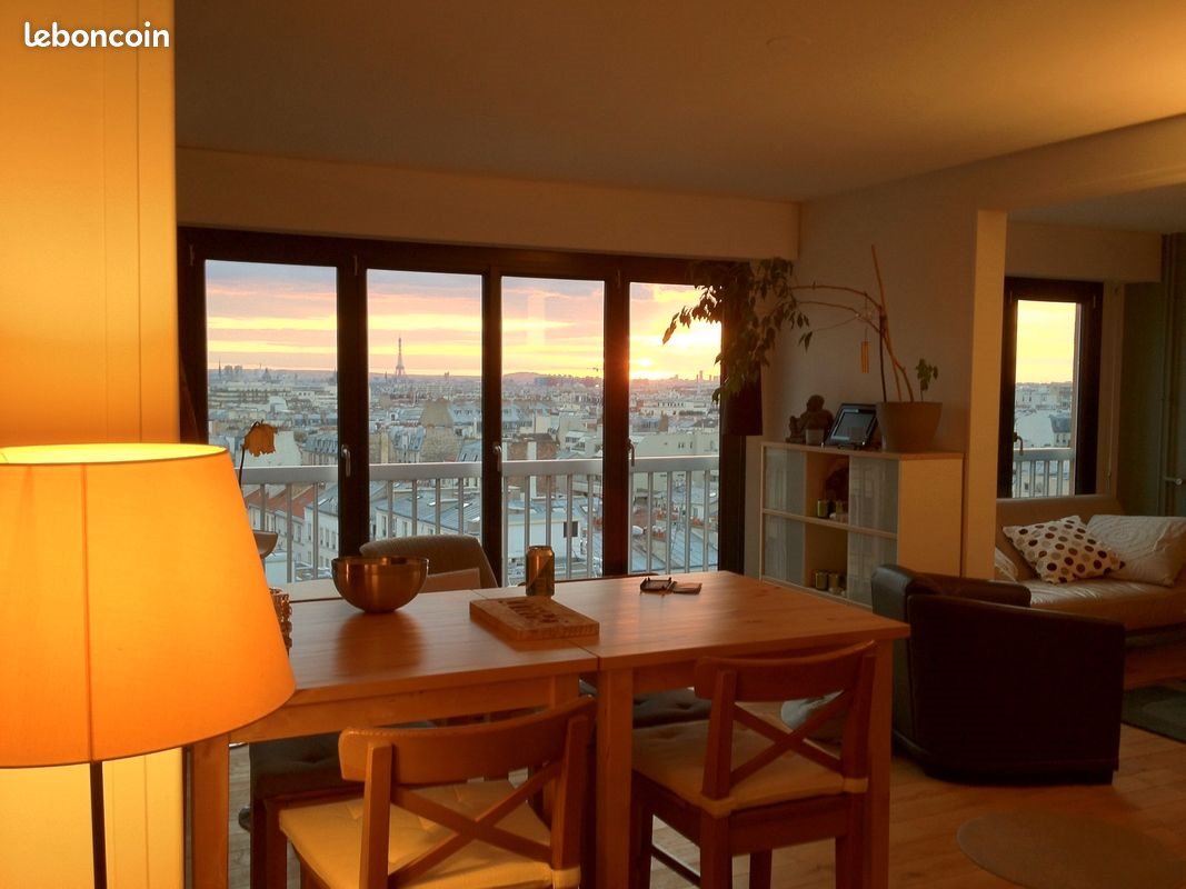 Magnfique appartement de 2/3 chambres au 10ème étage sur 11 avec ascenseur et gardien au sein d'une belle copropriété bien entretenue et arborée avec des jeux pour enfants. Parking et cave au sous-sol. Métro Charonne. Chaque pièce de l'appartement vous offre une vue sur tous les monuments de Paris (depuis la Bnf jusque Montmartre en passant par Notre Dame, La Bastille, la Tour Eiffel, la Défense...). Vue époustoufflante assurée! Exposition plein Ouest, les huisseries en aluminium sont très récentes, parquet massif au sol, matériaux de grande qualité, porte 5 points blindée. Cuisine équipée ouverte sur le séjour avec piano au gaz, large frigidaire et nombreux rangements. Salon semi-séparé qui peut faire office de 3ème chambre ou couchage d'invités. Buanderie avec branchements machine à laver, 1 salle d'eau avec douche, 1 salle de bain avec large baignoire d'angle, 1 Wc séparé. 1 chambre avec balcon filant de 5m2 vue sur Montmartre, 1 autre chambre avec vue sur tout Paris. Large penderie. Chauffage collectif compris dans les charges. Veuillez svp vous présenter par mail, location longue durée exclusivement. Loyer de 4 350 euros/mois charges comprises.