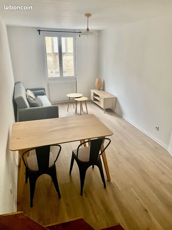 ? Appartement / Maison de ville meublé – Centre-ville À louer, appartement/maison de ville meublé de 55 m² sur trois niveaux, entièrement refait à neuf, lumineux et situé dans une rue calme en centre-ville. ? Disponible mi Février ? Composition : • Cuisine entièrement équipée : réfrigérateur, congélateur, plaque gaz, four, hotte, lave-vaisselle, lave-linge • Séjour avec canapé-lit, table, 4 chaises, table basse et meuble Tv • Chambre avec lit 140x190 et dressing • Salle de bain avec douche à l’italienne, Wc et rangements • Wc séparé au rez-de-chaussée • Cave ? Loyer : 600 € ? Charges : 20 € (provision) ? Visites uniquement après réception d’un dossier complet comprenant : • 3 dernières fiches de paie • Contrat de travail • Dernier avis d’imposition • Pièce d’identité • Dernière quittance de loyer