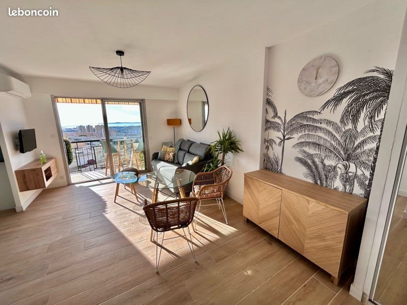 Grand studio meublé de 30m2 au dernier étage avec vue panoramique sur la mer , expo sud très lumineux et refait entièrement à neuf . Il se situe avenue sainte marguerite sur Nice Ouest , dans un quartier recherché et calme . Le bien est proche de l’entrée de l’autoroute et il y a un Arrêt de bus est au pied de l’immeuble. Le studio est loué meuble , entièrement équipé . Cuisine : frigo , grand four , machine à laver , lave vaisselle , micro onde . Salon : canapé lit convertible avec un vrai matelas pour couchage quotidien . Il y a deux grands placards de rangements . Climatisation réversible . Le loyer est de 770€ plus 70€ de charges Disponible à partir du 30 décembre Il sera demandé un dossier sérieux et solide pour la location .