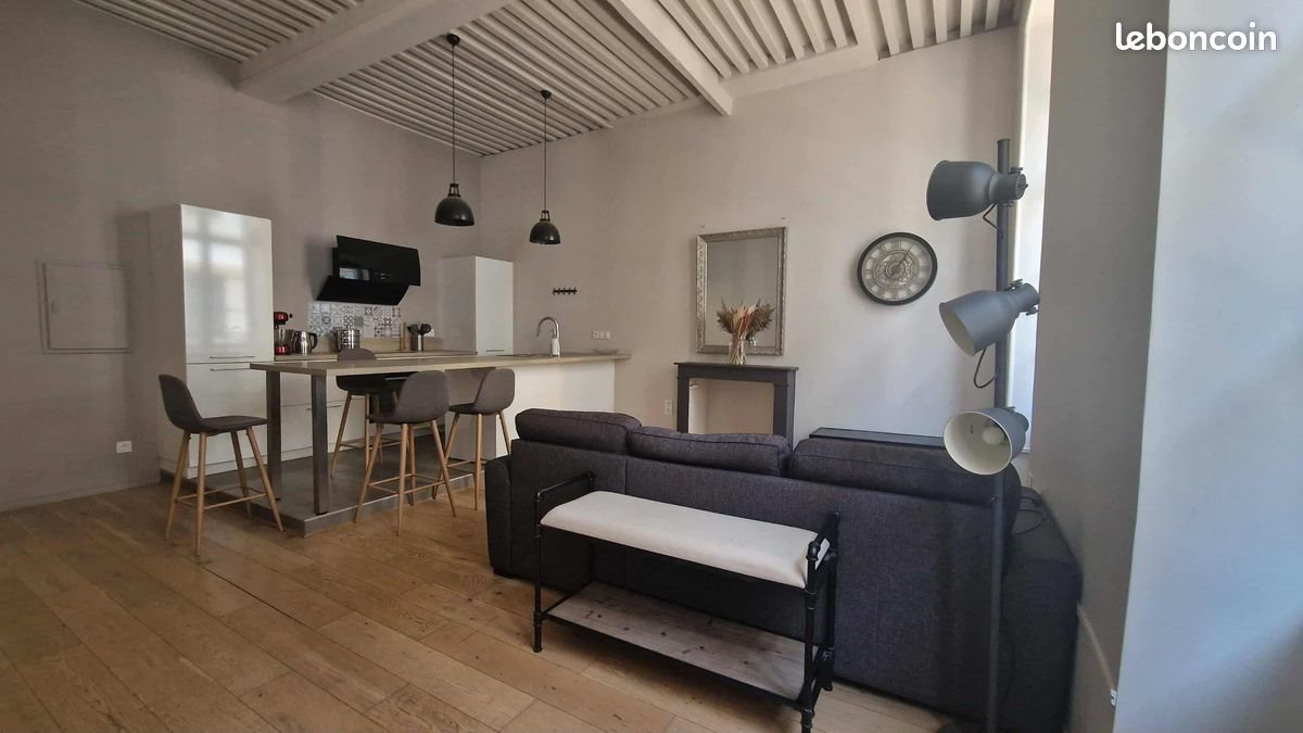 ? Appartement T3 de 63m2 dans un immeuble ancien, dans la zone piétonne de Clermont-Ferrand ? ? Location meublée au 1er étage avec escalier ?Quartier Gaillard - (5 minutes à pied de la place de Jaude) Proche du Tram, toutes commodités ? Appartement entièrement meublé et équipé : Cuisine ouverte sur le salon et son canapé/lit avec un bar. Equipements : frigo, lave-vaisselle, plaques induction, four, bouilloire et hotte. Une chambre parentale de 14 m2, une deuxième chambre (enfant ou invité) de 8.5 m2 Salle d’eau avec machine à laver, douche à l'italienne et sèche serviette, Wc séparés Très belle hauteur sous plafond, 3.75m dans la pièce de vie de 30 m2. ? Disponible à partir du 21 Décembre 2025 ? 800€ de loyer + 30€ de charges (eau et ordures ménagères) Dépôt de garantie : 1600€