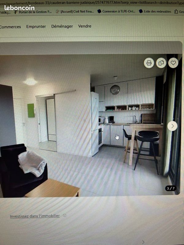 Studio meublé avec cuisine équipée, machine lave linge, vrai balcon , place de parking