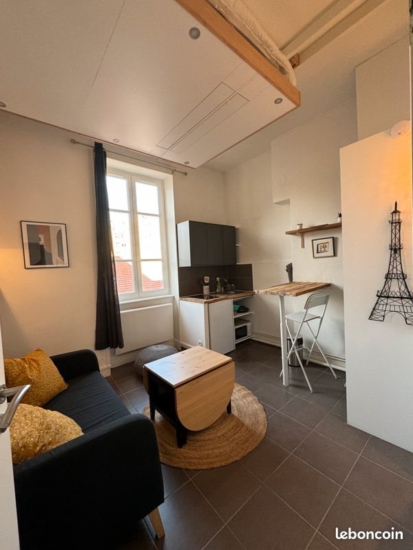 Loue studio meublé de 16m² refait à neuf, sur cour, lumineux, sans vis-à-vis. 3Ème étage sans ascenseur. Double portes palière. Porte 3 points. Se compose d’une pièce avec kitchenette (plaques de cuisson vitrocéramiques, frigo, micro-onde), table de bar, penderie, espace canapé et table basse, lit 140cm qui descend du plafond (système Bed-Up) et d’une salle de bain avec cabine de douche, toilette, lavabo et lave-linge. Rue très calme, proche commerces (Auchan 2min), Parc de la Tête d’Or (3min), Lycée du Parc (7min), métro ligne A (Masséna 5min). Raccordé fibre optique. Idéal étudiant.