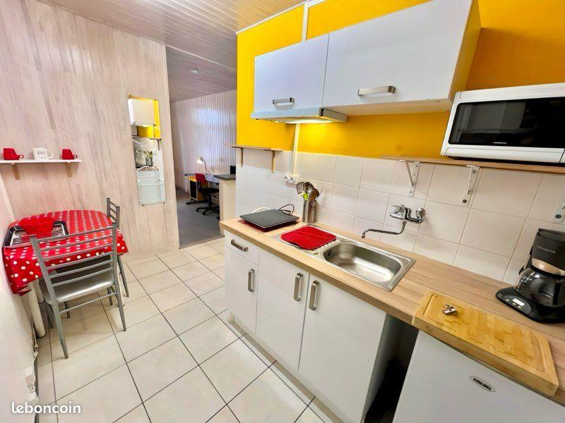 Appartement meublé de 25m2 proche de tous commerces. Situé à 300 mètres du Chu, au pied des lignes de Tram 1, 2 et 3 et à 500 mètres de l’école d’architecture. Appartement de 25 m²: • Cuisine équipée (plaque induction, micro-ondes,frigo) • Salle de bain, Wc • Placard • Sommier avec matelas • Table haute • Bureau Loyer mensuel : 560 € + 30 € de charges Appartement disponible à partir du 27 Septembre. Echange par la messagerie sécurisé Leboncoin.
