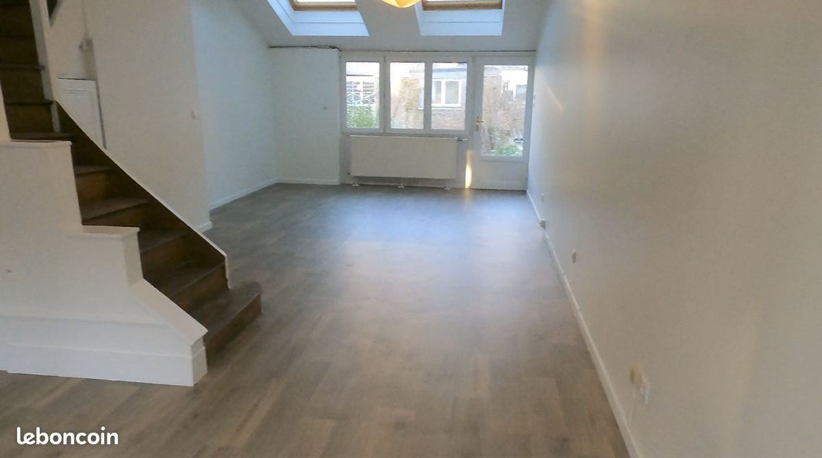 Maison de 70m2 Rdc : cuisine (équipée de plaque de cuisson), salon, salle à manger 1e étage : une chambre 2e étage : une petite chambre et une salle de bain avec douche, baignoire et Wc Cave sur dalle béton avec wc Jardin en rez de cave Chaudière neuve et double vitrage 780€ de loyer (Eau, gaz et électricité non compris, à la charge du locataire) Disponible de suite Rue calme, bus et commerces à proximité