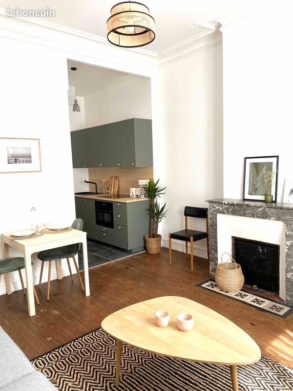 Direct propriétaire. Charmant 2 pièces situé aux Chartrons au 25 cours Balguerie Stuttenberg, dans un petit immeuble en pierres. Appartement en bon état général, soigneusement décoré avec gout et entièrement meublé, aux belles prestations anciennes (moulures, parquet, hauteur sous plafond). Situé au 2ème étage sans ascenseur, l'appartement comprend une entrée avec puit de jour et grand placard, une salle d'eau, une grande chambre avec bureau, un salon et une cuisine entièrement équipée avec petite buanderie (avec machine à laver le linge). Le logement est très lumineux et les fenêtres sur rue sont en double vitrage. Libre de suite. Dépôt de garantie un mois de loyer total. Loyer total 1090€/ mois hors électricité (Loyer de base 880€ + complément de loyer 150€ dont 30€ de wifi + provisions pour charges 60€).