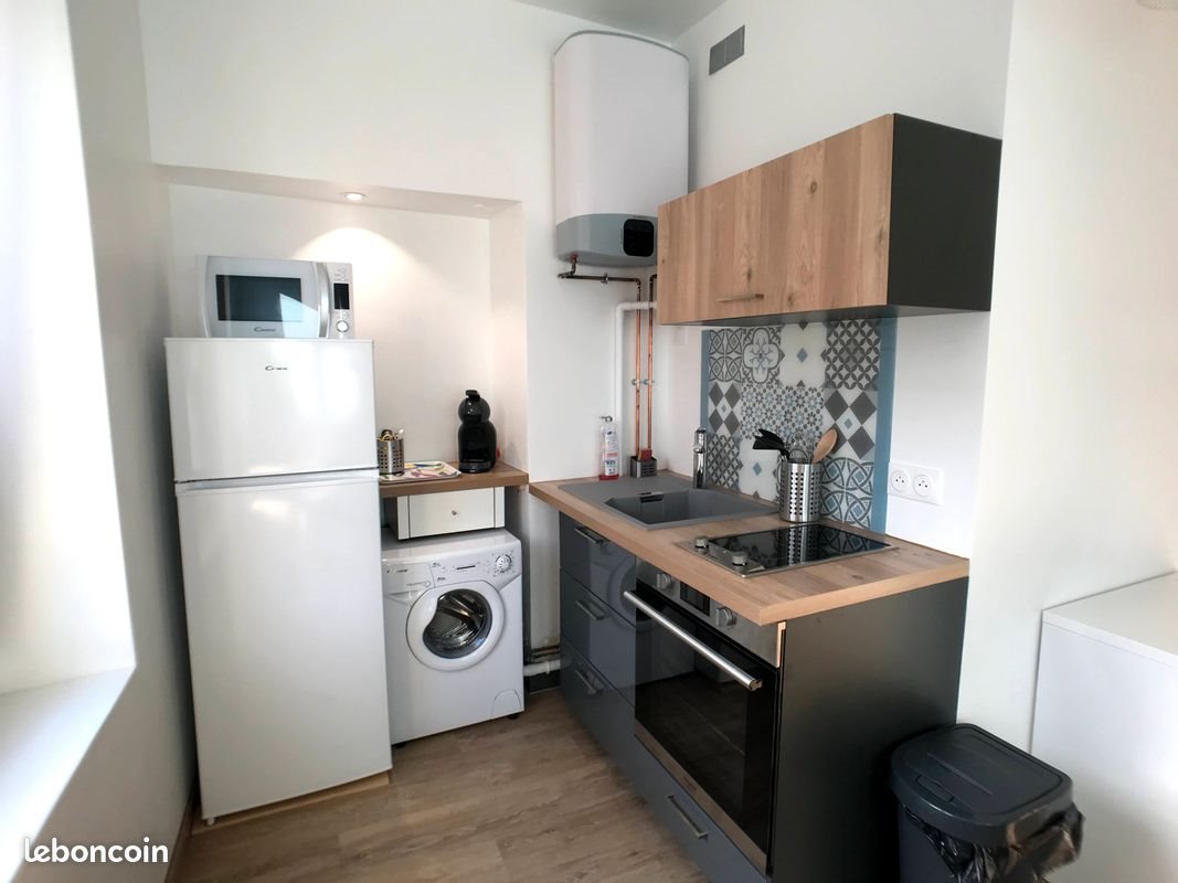 Studio lumineux refait à neuf – Tram St Thomas au pied de l’immeuble Idéalement situé au pied de l’arrêt de tram St Thomas, avec un accès direct sans changement jusqu’aux facultés, ce studio lumineux de 16 m², entièrement rénové en 2020, se trouve au 1er étage d’un petit immeuble calme de 2 étages. Il se compose d’une pièce principale fonctionnelle et bien agencée, comprenant un canapé convertible, une table avec deux chaises ainsi que de nombreux rangements, offrant un espace de vie confortable. Le coin cuisine entièrement équipé dispose de plaques vitrocéramiques, d’un réfrigérateur avec congélateur, d’un four, d’un micro-ondes, d’une machine à laver, d’une cafetière et de toute la vaisselle nécessaire pour une installation immédiate. La salle de bains, accessible par une porte coulissante, est moderne et agréable, avec une grande douche 120 x 80, un lavabo avec meuble de rangement et des Wc. Le logement est également équipé d’une télévision et d’un aspirateur. Un espace commun sécurisé permet le stationnement d’un vélo. ? Disponible à partir du ? Loyer : 480 € + 80 € de charges (électricité, eau froide, entretien des communs et internet inclus) Un studio clé en main, parfaitement situé, idéal pour étudiant ou jeune actif.