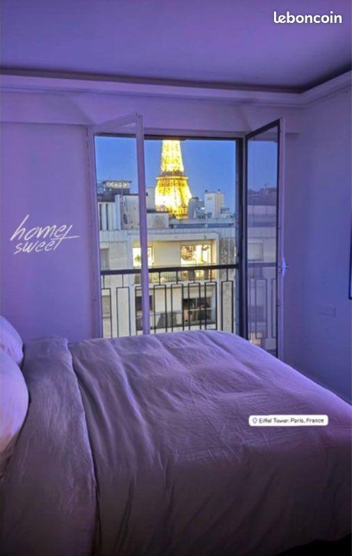 Très beau 2 pièces moderne de 50m2 entièrement refait à neuf et entièrement équipé situé à 100 mètres de la rue de Passy dans un immeuble années 70 au 8eme étage donc très lumineux. Il est composé de : - Un salon / salle à manger et cuisine américaine équipée avec vue sur les toits de Paris - Une chambre avec dressing/lit King size (+magnifique vue Tour Eiffel) Salle de douche et toilettes séparés Appartement neuf et moderne / entièrement équipé Domotique Cheminée à l’éthanol dans le salon Cuisine entièrement équipée (vaisselle / plaque induction / lave vaisselle / réfrigérateur / lave-linge / sèche-linge) Dossier solide exigé