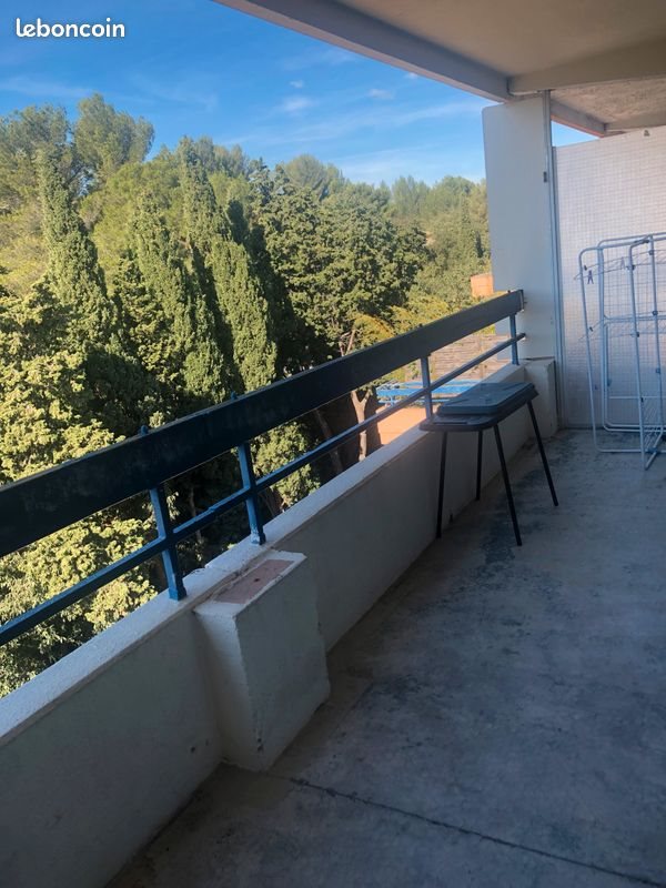 Loue T2 , 4ème étage avec ascenseur 1 chambre, 1salon avec coin cuisine, salle de bain avec wc. 1 grand balcon (vue sur colline) , garage et cave Proche arrêt de bus et commerces