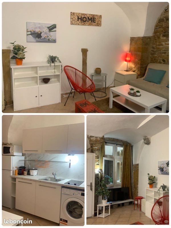 Lyon 5 Rue des Trois Mariés F2 entièrement rénové et meublé. Salon avec un canapé, une table basse, plusieurs commodes, une grande penderie, un Tv et des rangements. Cuisine avec 2 plaques électriques, un grand réfrigérateur, un micro-ondes, une machine à laver et des rayonnages. Une chambre avec un grand lit, 3 grandes commodes, 2 petites commodes, un bureau et une chaise. Salle de bain avec un bac à douche, un lavabo, un wc et des étagères. Libre 18 Décembre. Loyer 850,00 euros charges comprises hors électricité et eau.