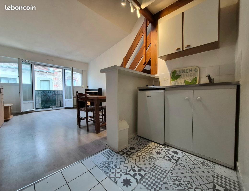 Appartement lumineux exposition Est-Sud. F1 Bis Duplex comprenant : entrée avec placard, kitchenette : frigidaire, plaque de cuisson, micro onde, pièce de vie de 20 m2 donnant sur un petit balcon, rue très calme avec stationnement gratuit. A l'étage chambre de 10 m2 au sol. Salle de bain/W.C. A moins de 300 mètres de tous commerces et ligne de bus. Proche lycée Jean Jaurès et Clémenceau. Accès rapide Fac Des Sciences bus et voiture. Appartement disponible. Loyer 557 € + Provisions Sur Charges 39 € + T.O.M. 14 € = 610 euros.
