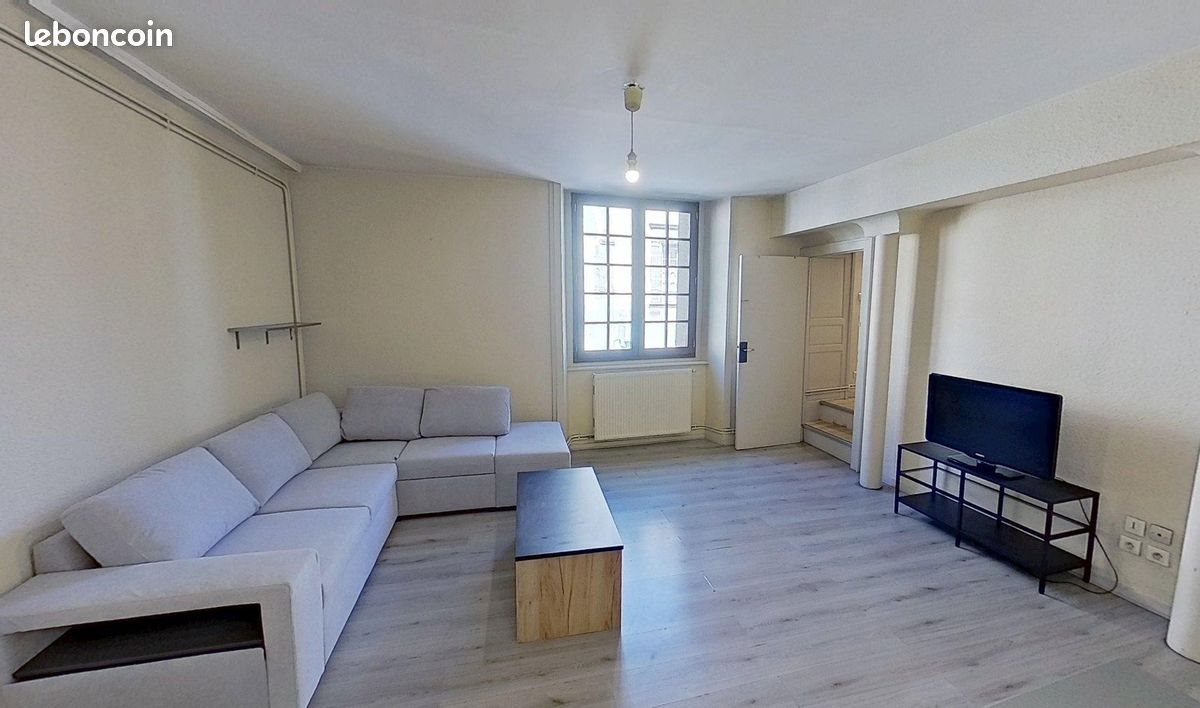 Appartement T2 meublé comprenant La pièce de vie est meublée avec une table basse, un meuble télévision et une télévision. La cuisine ouverte est équipée d'un évier, d'une cuisinière, d'une hotte, d'un réfrigérateur, d'un congélateur, d'un mange-debout avec ses tabourets ainsi que de nombreux rangements et ustensiles de cuisine. La salle d'eau comporte une douche, un meuble vasque avec miroir, une machine à laver ainsi que des rangements. La chambre est meublée avec lit, bureau, placard de rangement ainsi que commode.